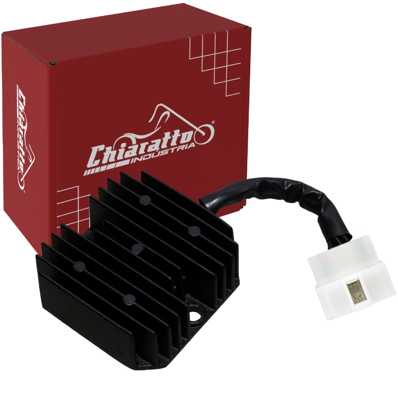 Verificar previamente o funcionamento do conjunto estator/magneto e se a bateria está completamente carregada (12,8V). O regulador retificador de voltagem depende do resto do sistema de carga funcionando corretamente.
