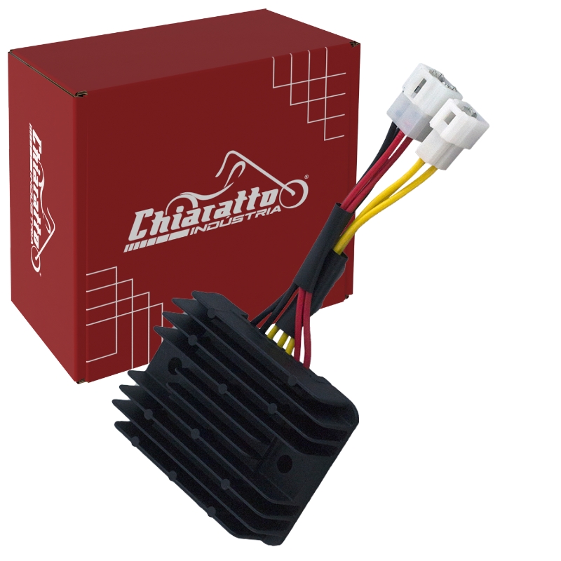 Verificar previamente o funcionamento do conjunto estator/magneto e se a bateria está completamente carregada (12,8V). O regulador retificador de voltagem depende do resto do sistema de carga funcionando corretamente.