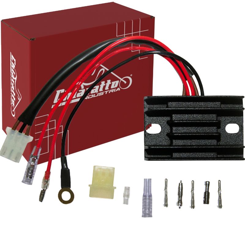 Verificar previamente o funcionamento do conjunto estator/magneto e se a bateria está completamente carregada (12,8V). O regulador retificador de voltagem depende do resto do sistema de carga funcionando corretamente.