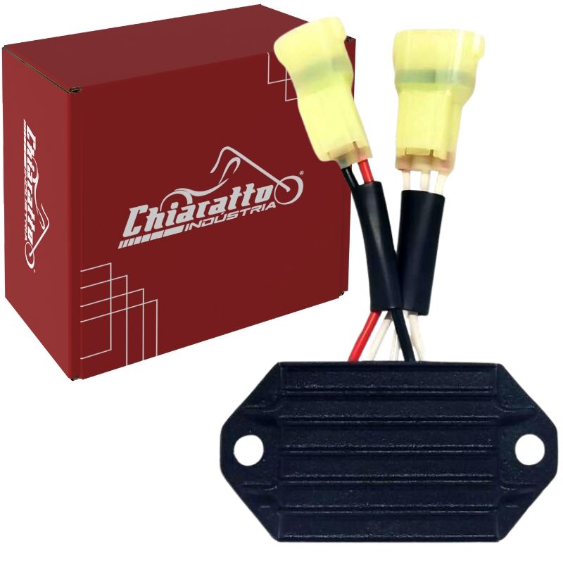 Verificar previamente o funcionamento do conjunto estator/magneto e se a bateria está completamente carregada (12,8V). O regulador retificador de voltagem depende do resto do sistema de carga funcionando corretamente.